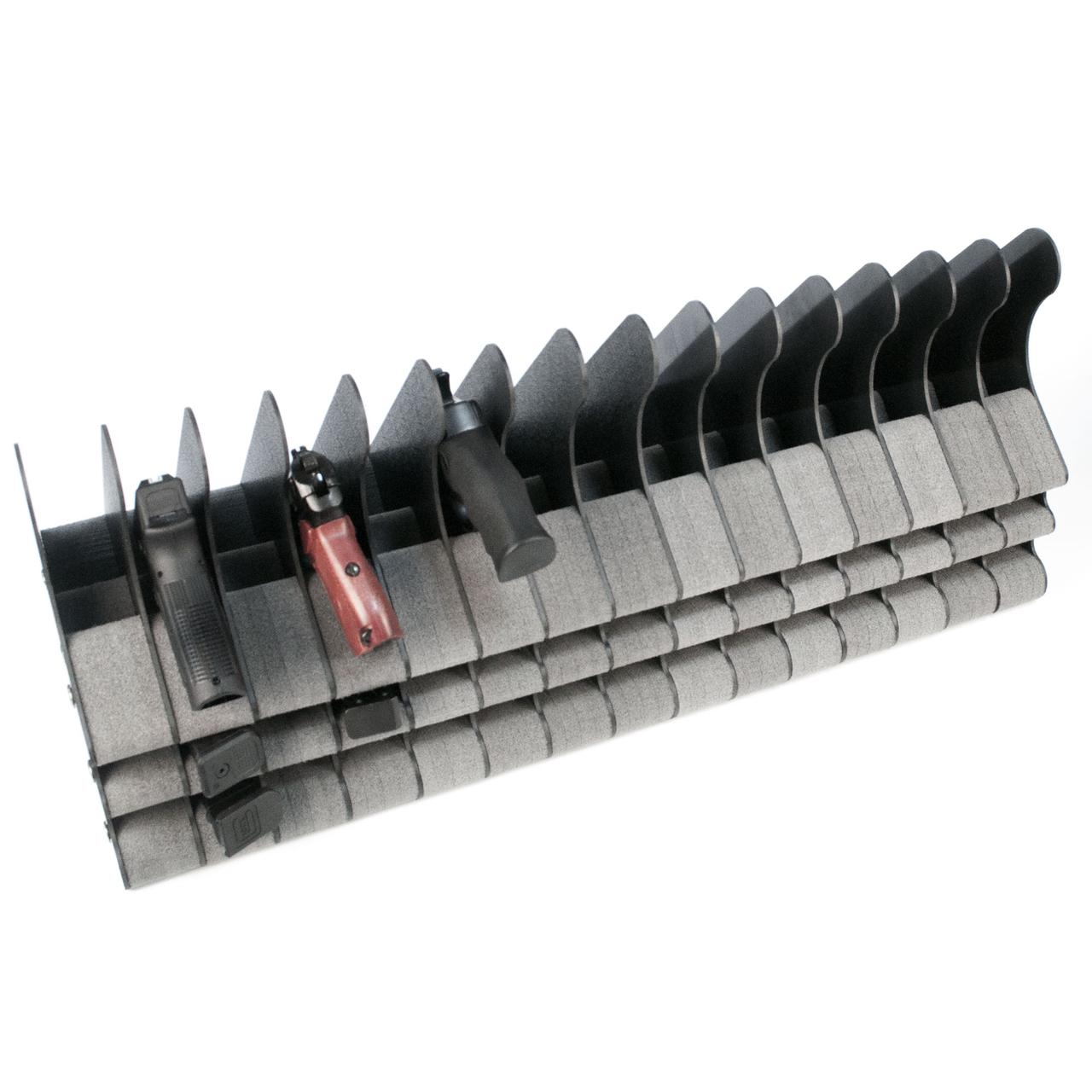 Підставка під 15 пістолетів і 30 магазинів ПЛУ15/30 призначена для дбайливого зберігання зброї як на постійній основі, так і тимчасовою.